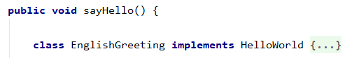 지역 클래스는 블록 안에 정의된 클래스를 말한다. 아래 이미지에서 EnglishGreeting은 지역 클래스이다.