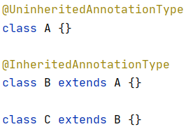 클래스 C를 확인해보면 클래스 B를 상속받고 있는데 InheritedAnnotationType 어노테이션을 가지고 있다. C에는 아무 어노테이션도 안붙어 있는데, 수퍼 클래스인 B에서 @Inherited가 붙은 InheritedAnnotationType 어노테이션을 가지고 있어 상속되었다.