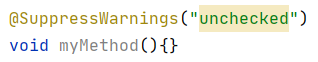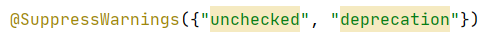 모든 컴파일러의 경고는 두 개의 카테고리에 속한다. deprecation와 unchecked이다. unchecked는 제네릭스가 등장하기 전에 쓰인 레거시 코드를 만났을 때 발생할 수 있다. 여러 경고를 무시하고 싶다면 아래와 같이 배열로 주면 된다.