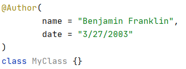 어노테이션은 elements를 가질 수 있다. elements는 이름을 가질 수도, 가지지 않을 수도 있다. elements는 값을 가진다. 다음은 elements를 가지는 어노테이션을 사용하는 예시이다.
