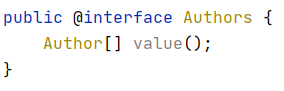 Authors.class가 containing annotation type이다. Containing annotation type은 반드시 배열 타입의 value element를 가져야 하는데, 배열의 타입은 repetable annotation type이어야 한다.