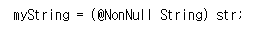 - 자바 8부터는 type checking framework를 제공하지 않으므로 사용하고 싶으면 따로 다운받아서 사용해야 한다. (다시 말해, 그냥 @NonNull을 사용한다고 적용되는 것이 아니라 별도의 설정을 해주거나 도구를 이용해야 타입 어노테이션의 효과가 적용된다는 뜻인 것 같다.)