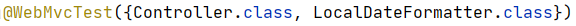 Spring boot를 이용할 경우 Formatter를 bean으로만 등록해주면 알아서 등록이 이루어진다. 근데 테스트가 또 깨졌다. 같은 이유로 말이다. Formatter가 제기능을 못했단 뜻이다. 혹시나 해서 Formatter를 FormatterRegistry에 직접 등록하고 테스트를 돌려봤지만 역시 깨졌다. 침착하게 돌아보니 @WebMvcTest가 눈에 들어왔다.