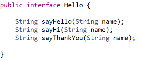 Hello의 구현체에 대한 프록시를 만들려면 Hello라는 인터페이스를 구현해야 한다. 즉, Hello의 모든 메소드를 구현해야 한다. 만약 sayHello() 메소드만 기능을 확장하고 싶다고 하더라도 sayHi()와 sayThankYou()를 모두 override해주어야 한다. override 함수가 하는 일이라곤 타겟의 메소드에 위임하는 것 뿐인데도 말이다.