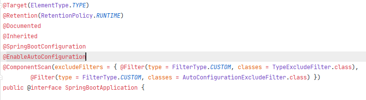 참고로 @EnableAutoConfiguartion은 @SpringBootApplication에 메타 어노테이션으로 붙어있다.