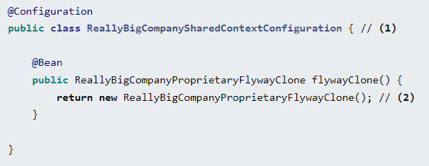 (1) 회사 내의 모든 Spring 프로젝트는 ReallyBigCompanySharedContextConfiguration을 포함하는 프로젝트의 .jar 파일을 import 해서 쓰면 된다.