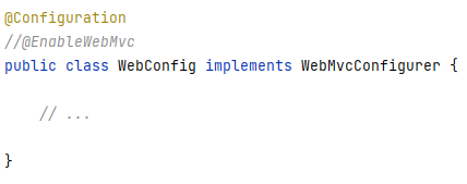- 이 어노테이션이 붙을 경우 `WebMvcConfigurationSupport` 클래스로부터 Spring MVC 설정을 import 한다